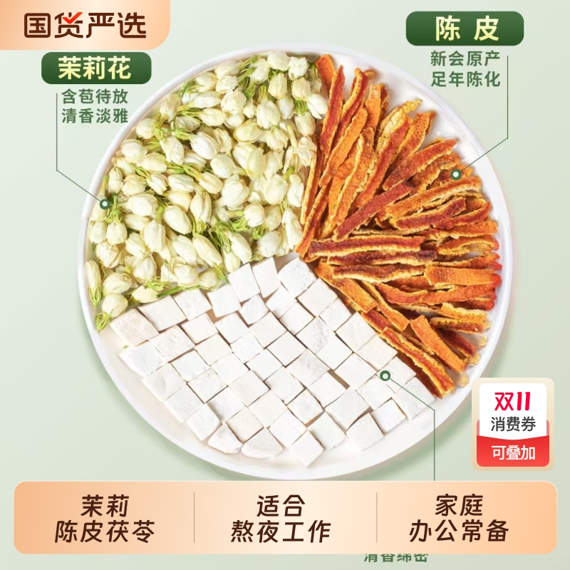 茉莉花茯苓陈皮官方正品中材药房排浊香体茉莉陈皮茯苓组合花茶