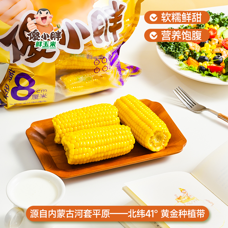 傻小胖1小时锁鲜黄金八厘米黄糯玉米新鲜现摘粘开袋非即食黏玉米