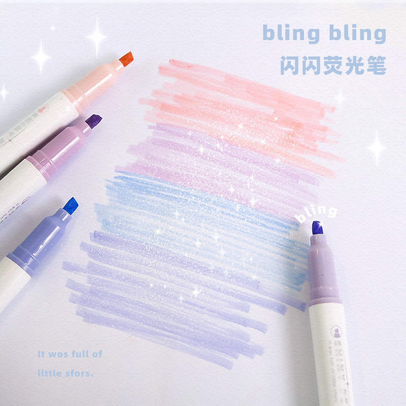 现货速发闪闪柔和护眼荧光笔学生用划重点手帐笔萤光记号笔彩色闪