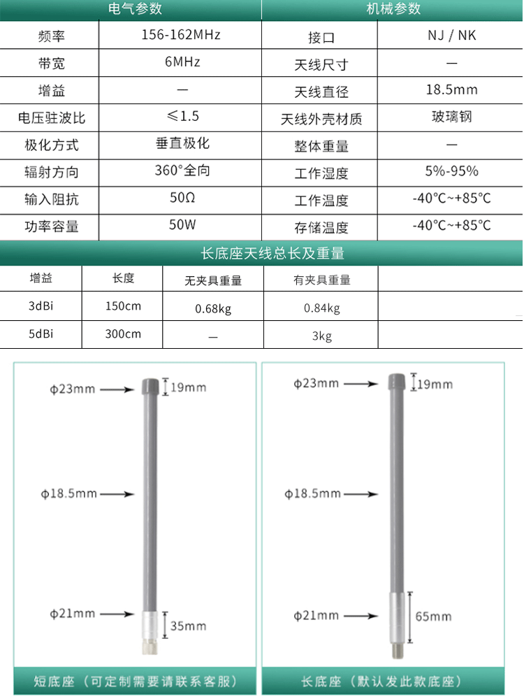 船用AIS天线船舶定位导航156-162MHz高频玻璃钢全向天线海上自识别VHF基地台海事对讲机防撞避碰导航仪天线