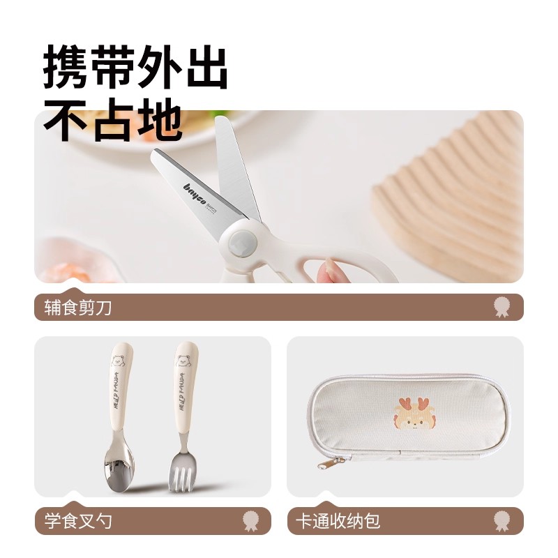 拜格婴儿辅食剪刀宝宝专用食品级不锈钢儿童正畸便携外带辅食工具