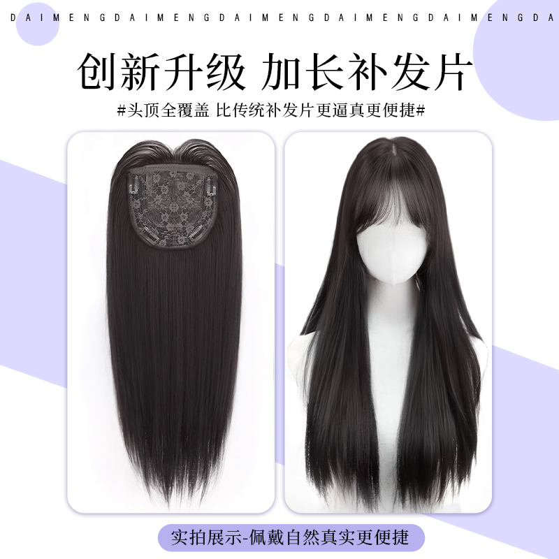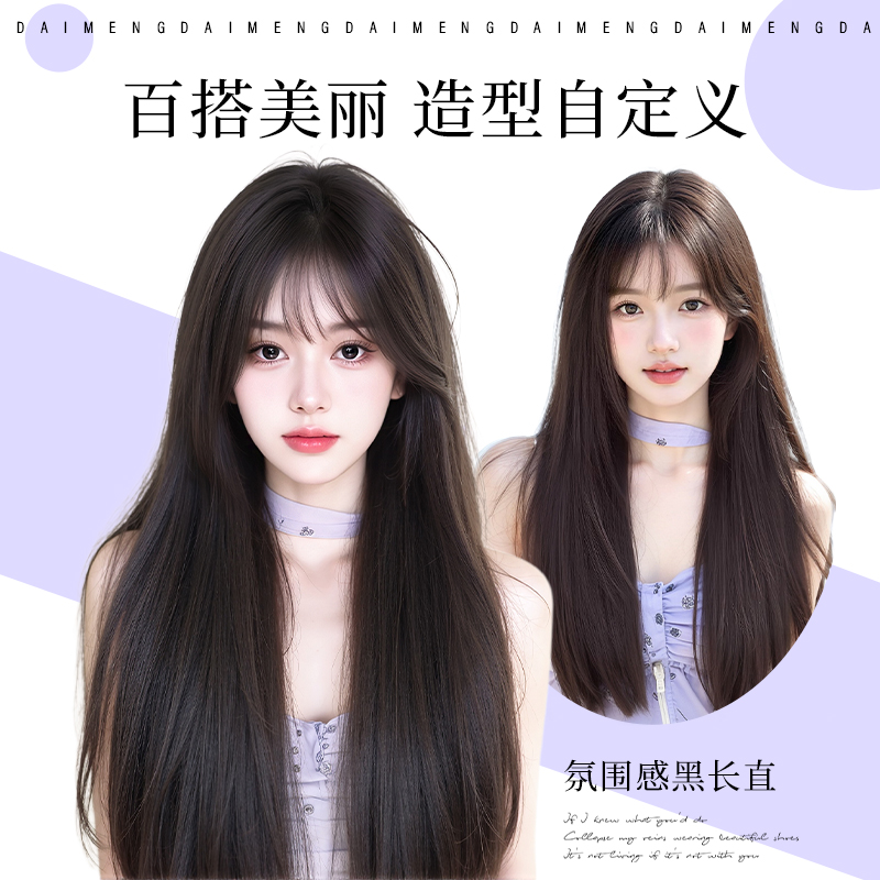 不用戴发网的假发全头套女自然仿真发高颅顶黑长直轻薄无痕假发片