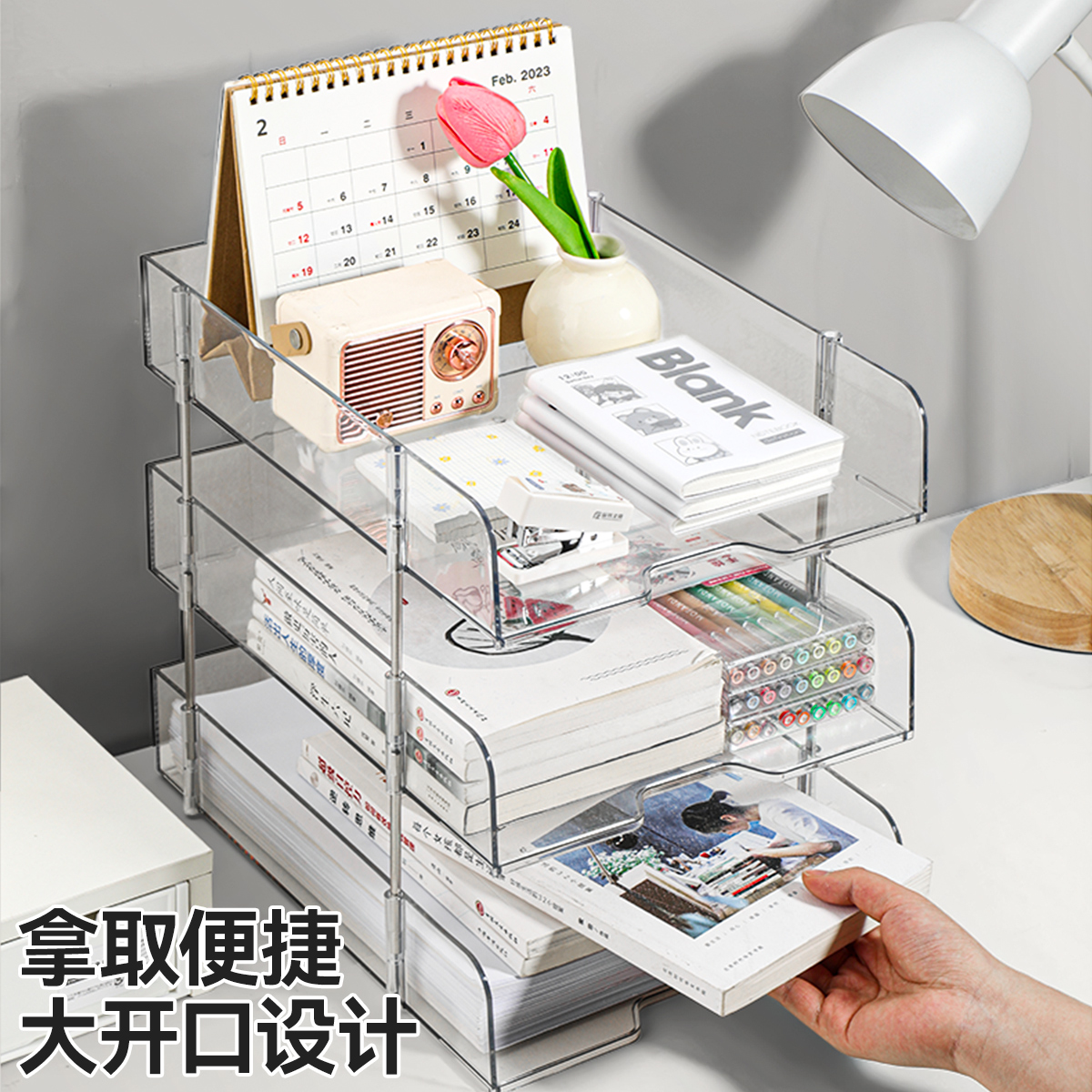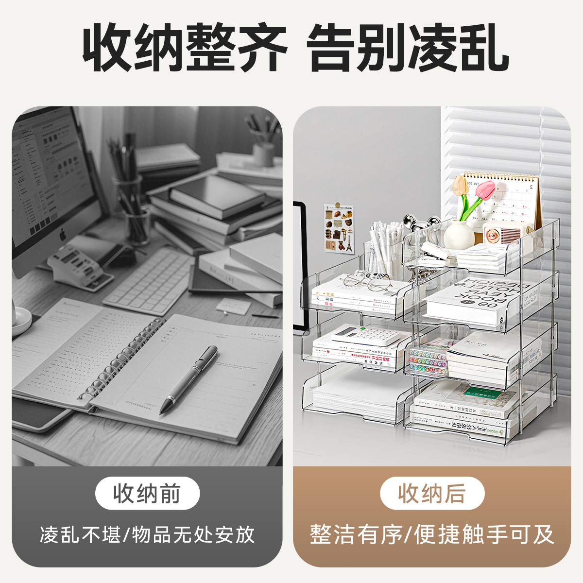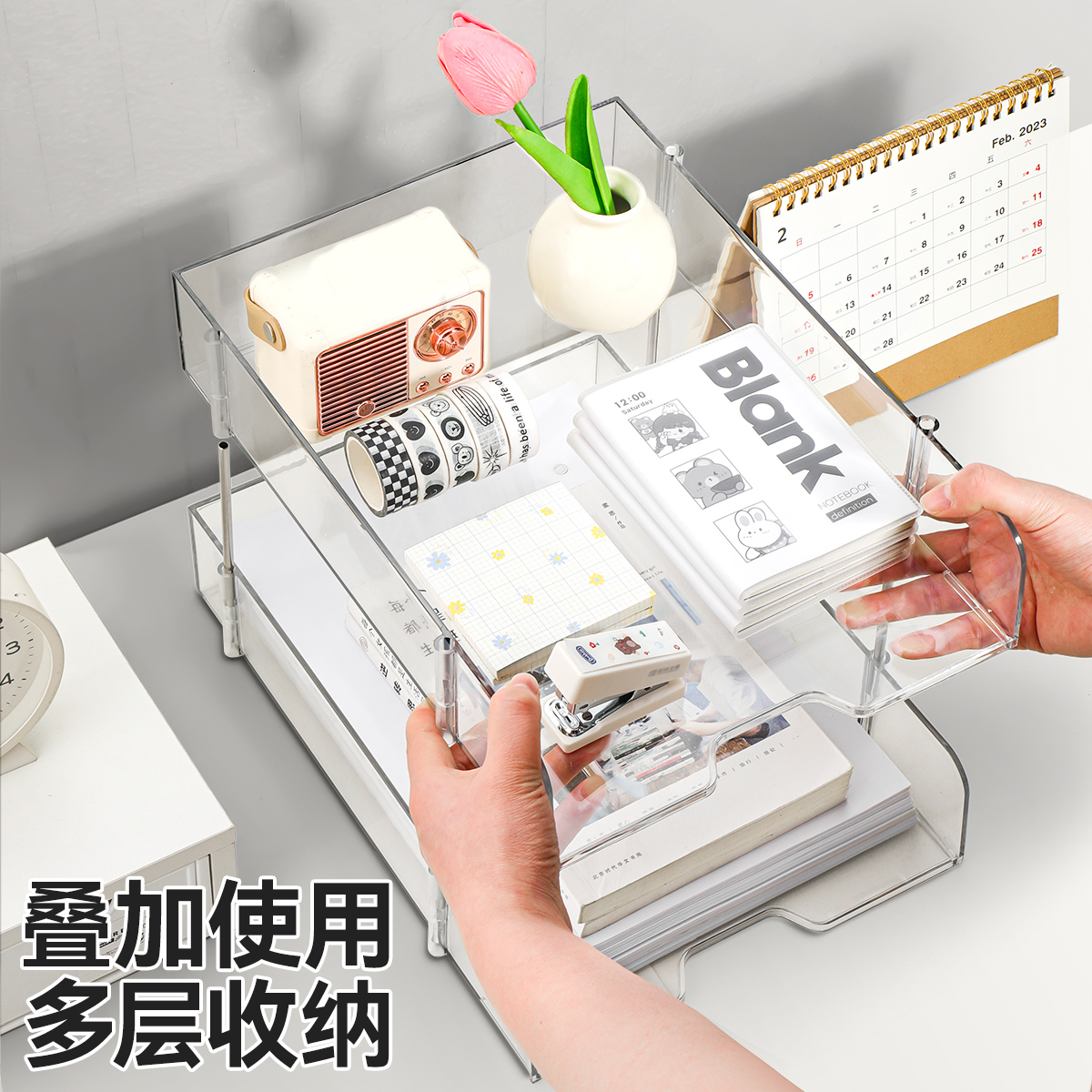 透明文件收纳架桌面置物支架ins高颜值办公室书本a4纸桌子耐防摔收纳盒工位书本桌柜可叠加抽屉式文具整理盒