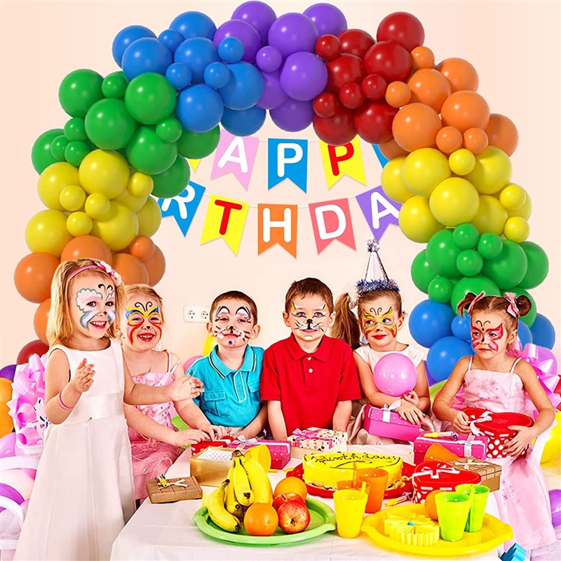 175件彩虹乳胶气球拱形套装 儿童生日花环背景装饰气球链拱门套餐