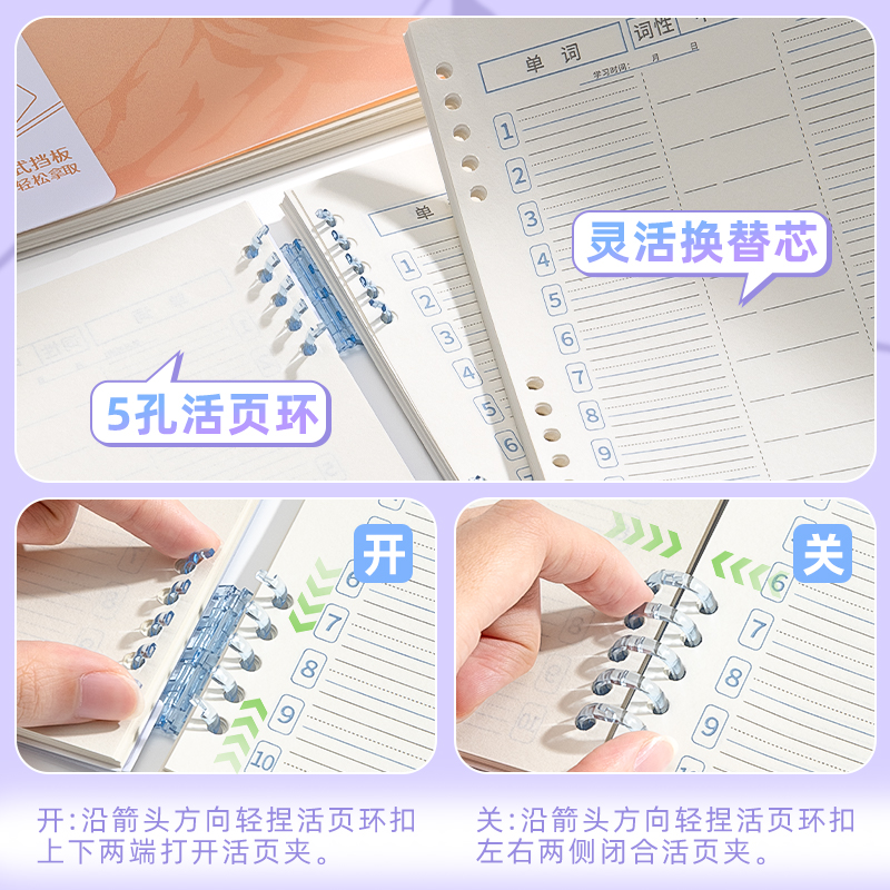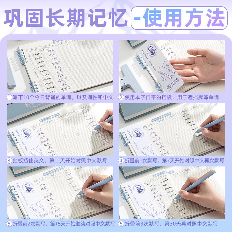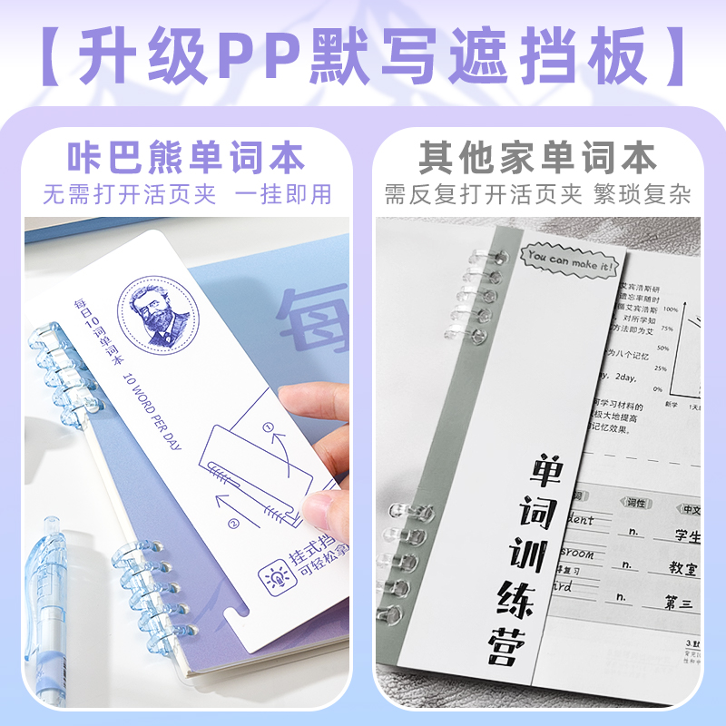 咔巴熊小学初高中生自律学习英语每日十词单词本艾宾浩斯高效记忆单词本PP默写遮挡板加厚纸张巩固长期记忆法