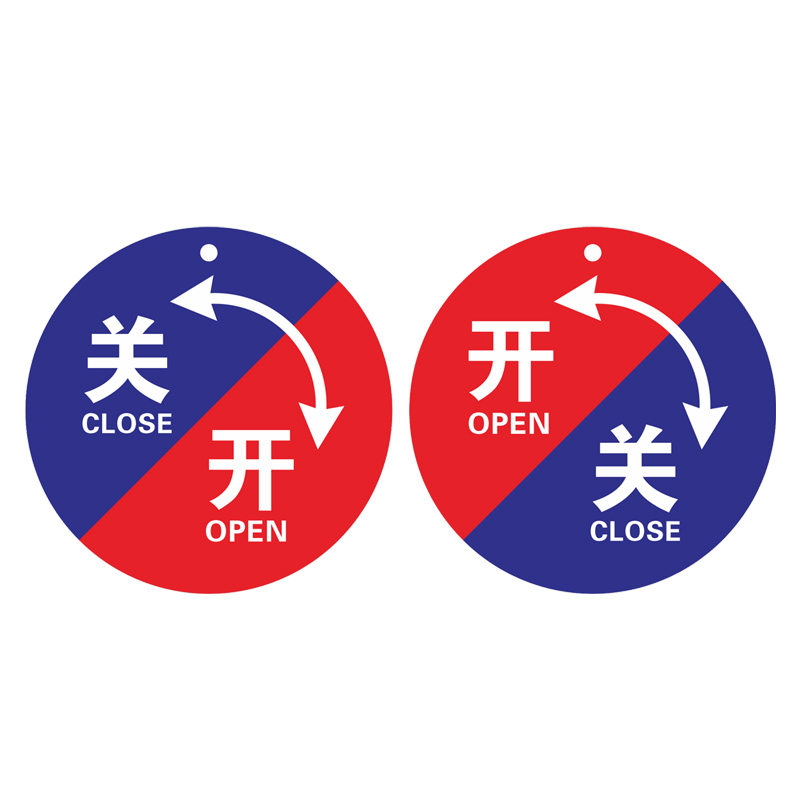 阀门开关方向挂牌标识圆形亚克力双箭头开闭提示牌双面防水挂牌赠