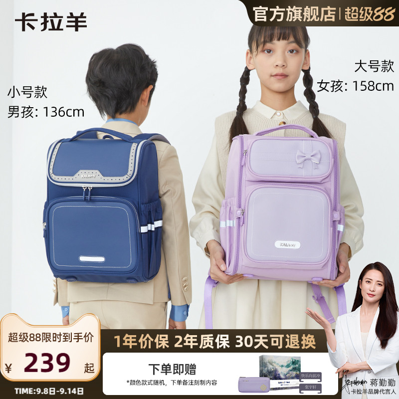 [蒋勤勤代言云朵书包ProMax]卡拉羊小学生书包女8维减负防下坠男