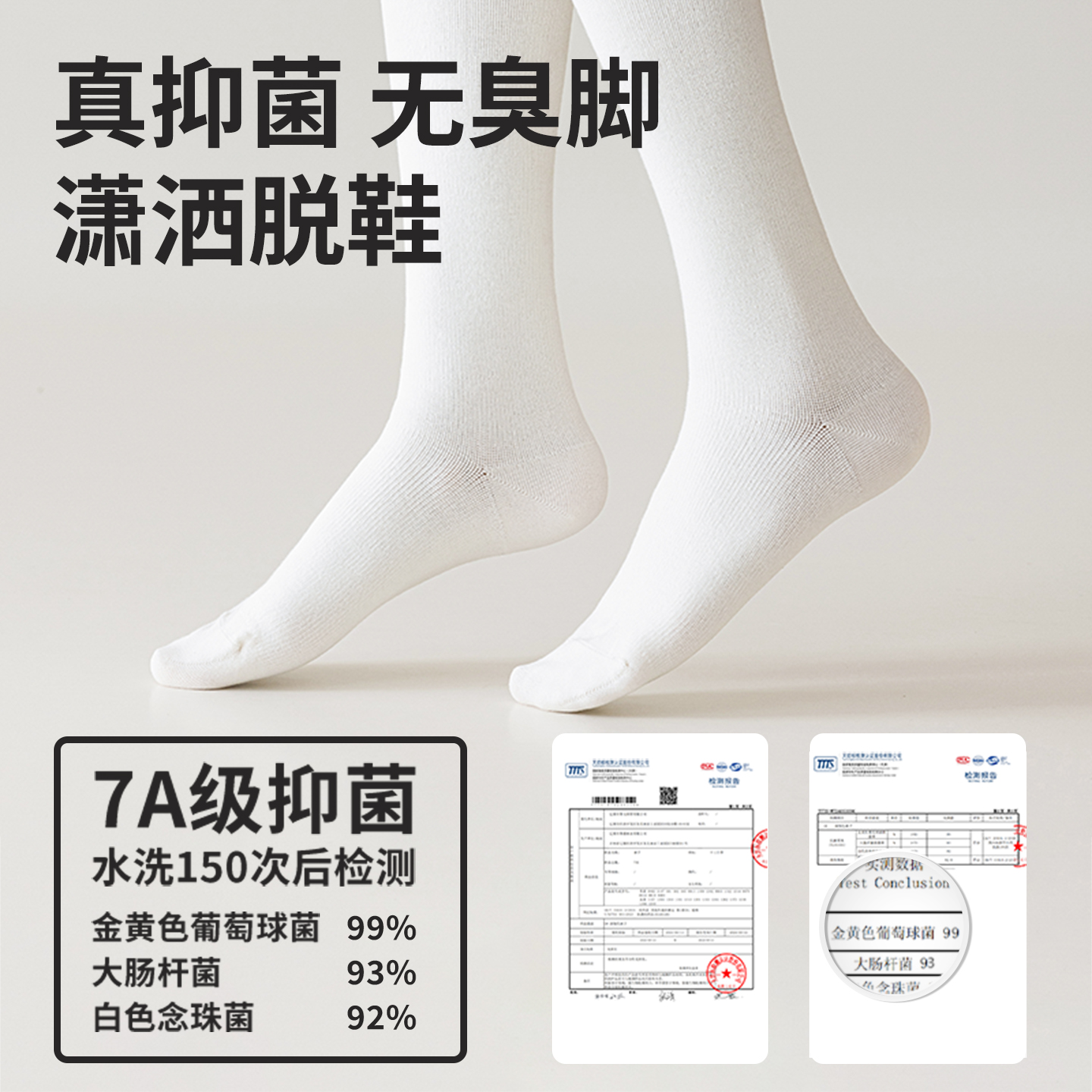 5双装 往往精梳棉质3A抗菌女士袜子中长筒袜纯色休闲男袜秋冬季