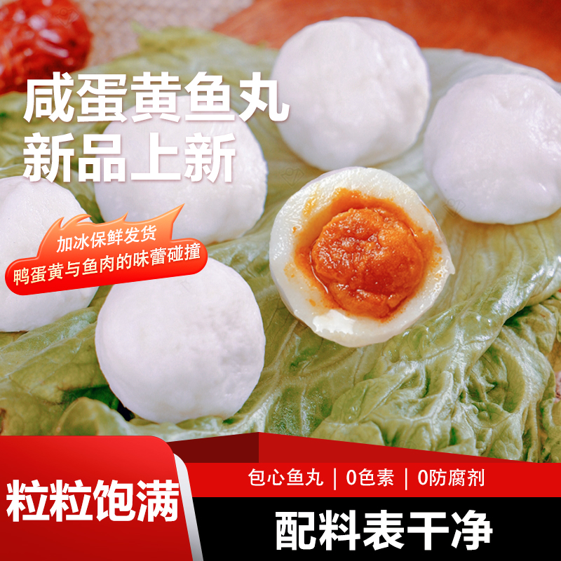 包心咸蛋黄鱼丸火锅食材实心麻辣烫涮锅新鲜制作手工