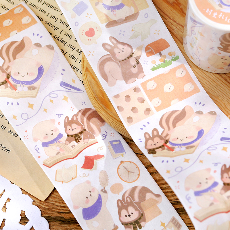元气森之岛系列和纸胶带整卷可爱风手绘插画复古风手账素材拼贴装饰贴画diy材料贴纸小清新文创礼物