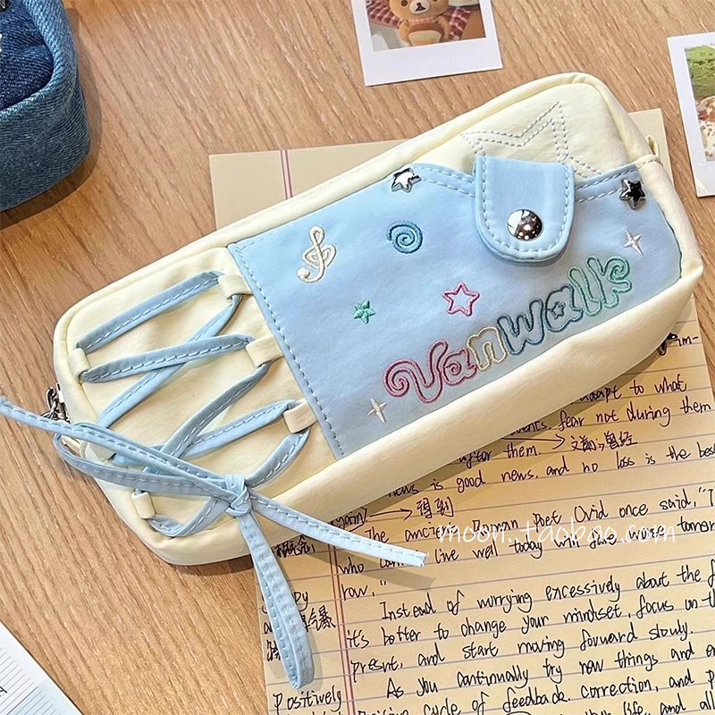 小红书同款多巴胺牛仔笔袋大容量女生痛包高颜值ins风文具收纳袋