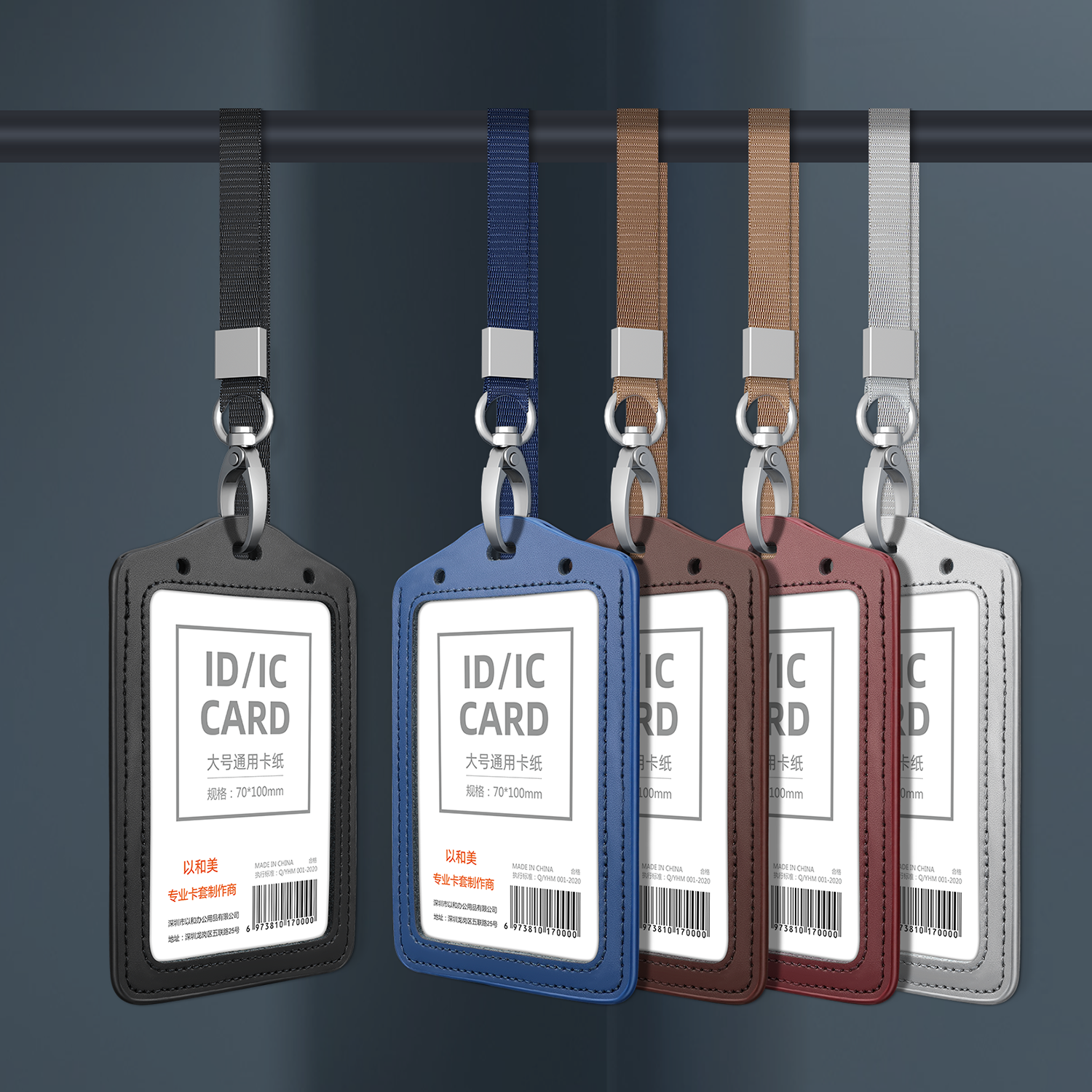 以和美真皮工作证卡套挂脖绳大号工作牌证件套工牌挂绳定制人员工牌胸牌套员工厂牌套工卡吊牌工牌绳子定制