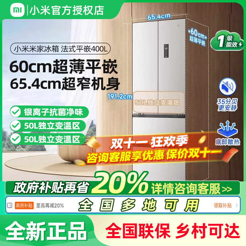 【60cm超薄平嵌】小米米家400L法式四门风冷无霜嵌入式小户型冰箱