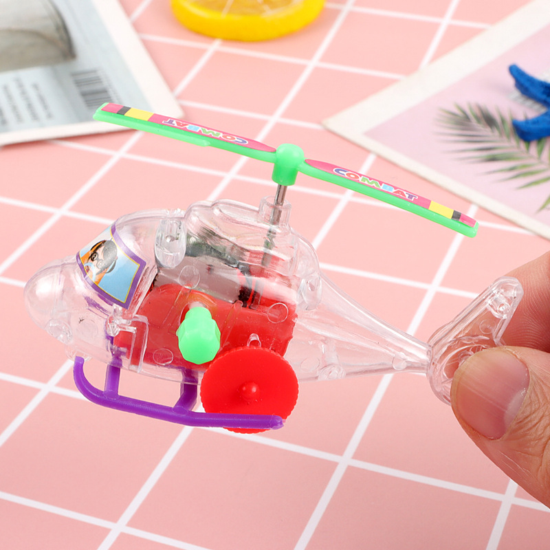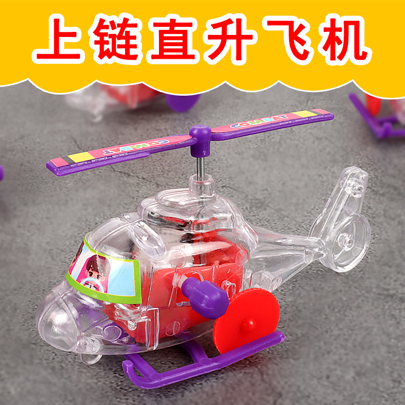 新款上链发条透明小飞机 上链直升机滑行带螺旋桨可转动玩具