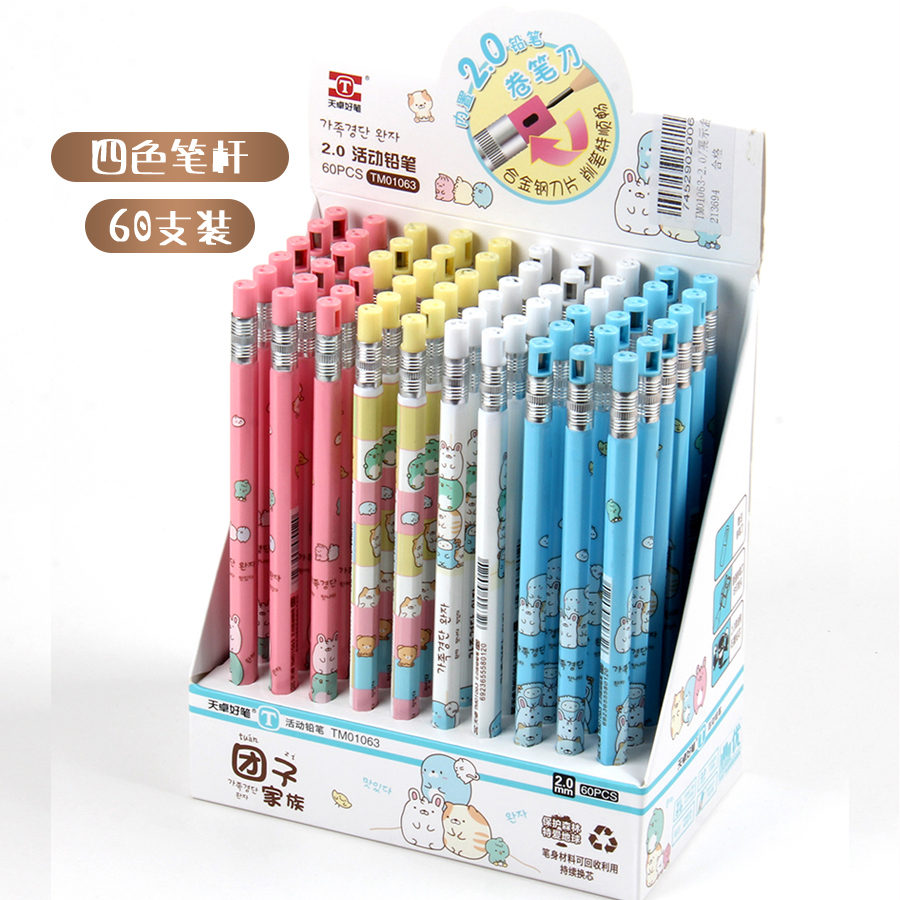 2.0自动铅笔天卓粗头免削杆小学生用黑铅2b铅芯卡通可爱写字笔尾可以削的自动笔写不断无毒2比活动铅可换芯