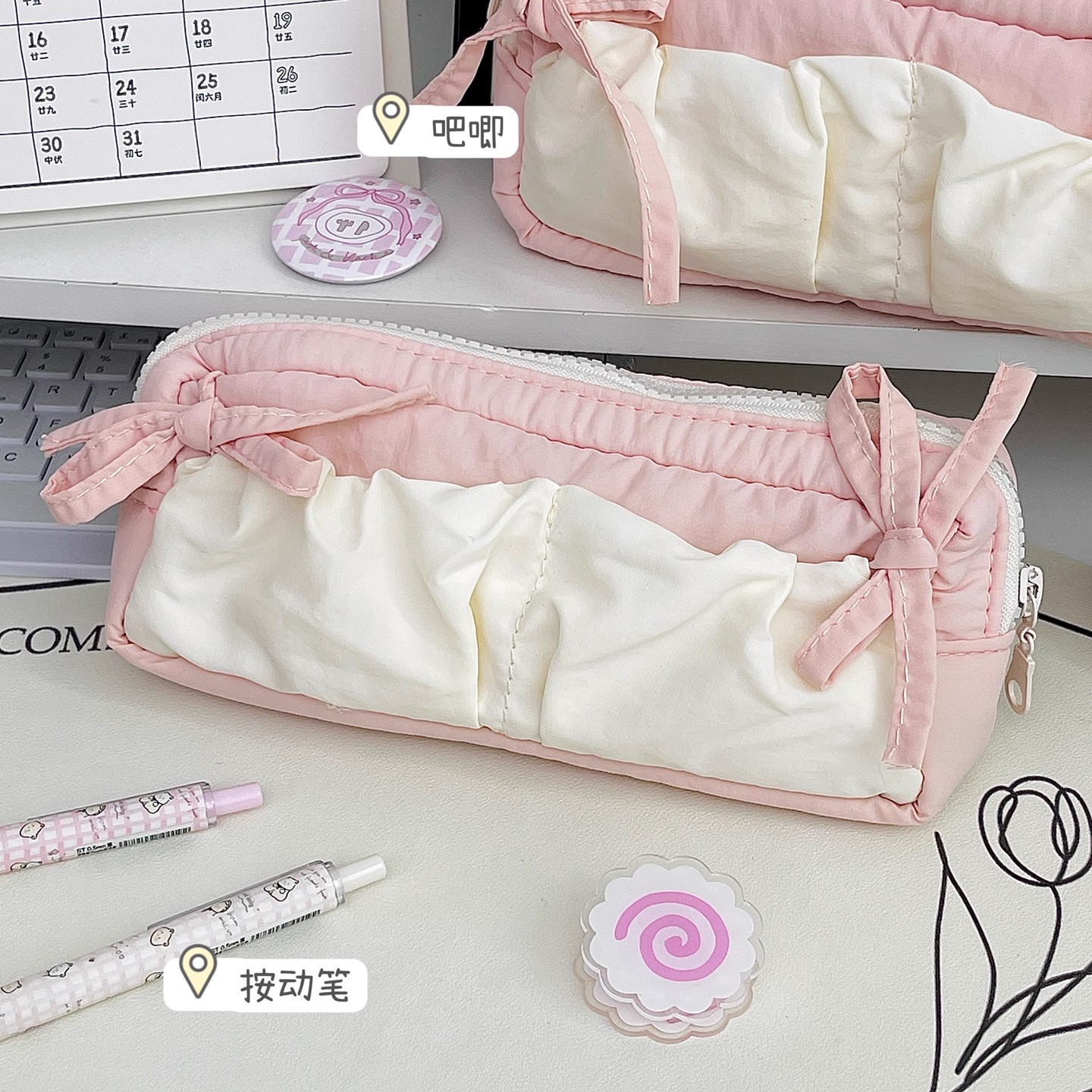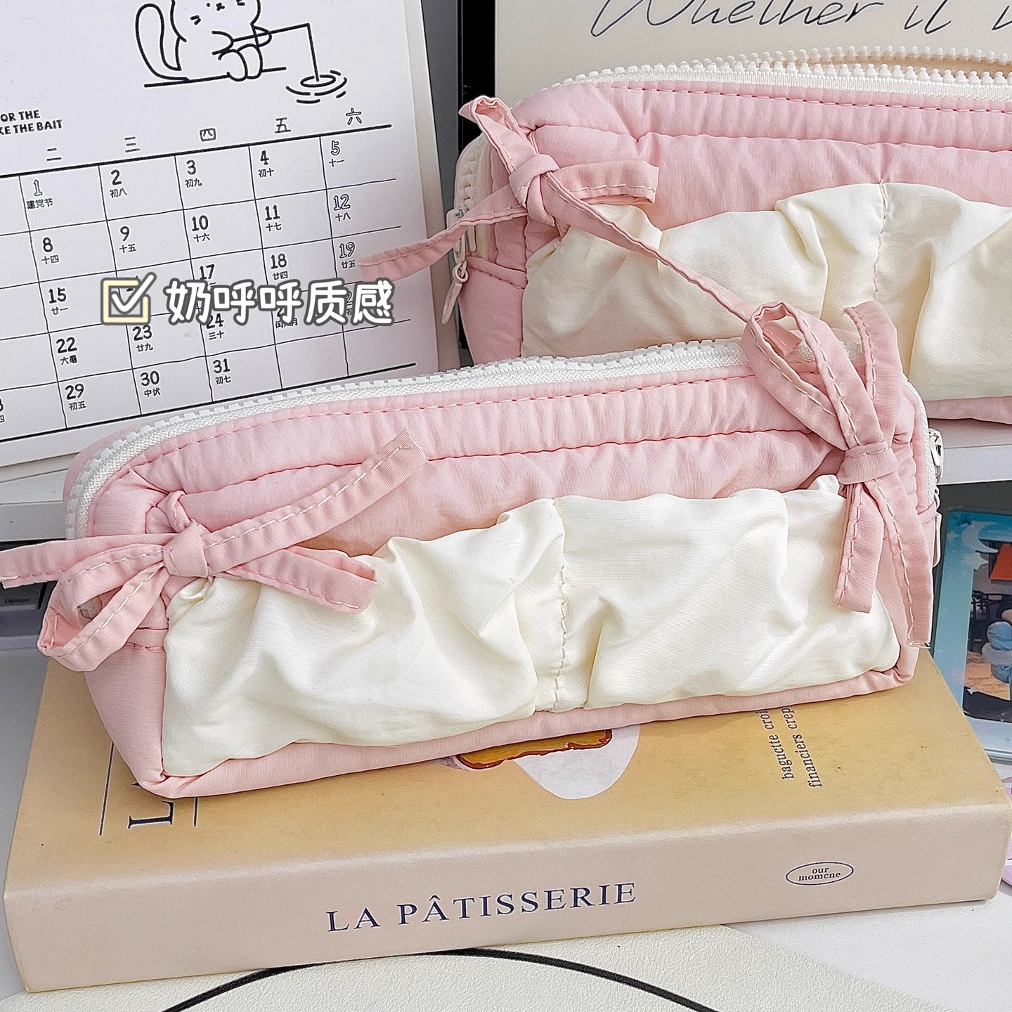ins粉色云朵泡芙蝴蝶结笔袋学生高颜值简约文具收纳袋大容量笔盒