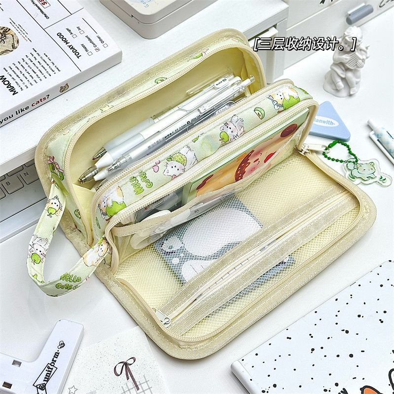 高颜值ins风绿色苹果小猫笔袋多层PVC大容量痛包学生文具盒化妆包