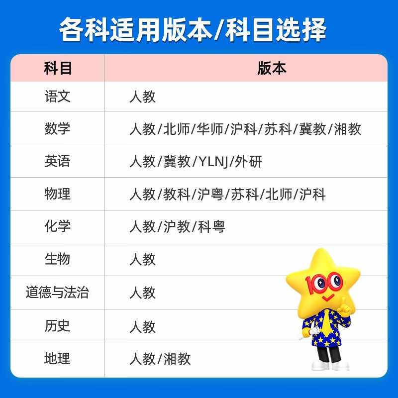 2026版初中必刷题七年级八九年级上下册人教版北师沪牛数学语文英语物理化学生物地理政治历史小四门试卷七上初一二三同步练习册书