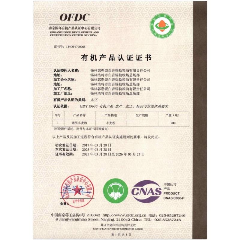 包子有机小麦粉1kg*2袋 到手4斤 内蒙古饺子面条小麦粉