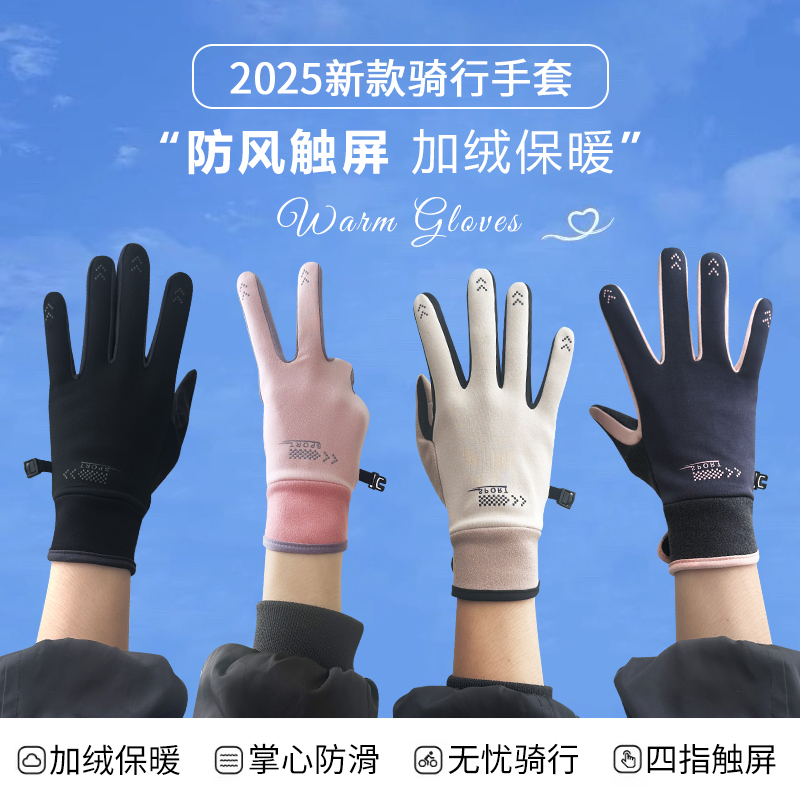 新款冬季保暖手套加绒加厚防寒触屏骑行开车户外运动德绒棉手套