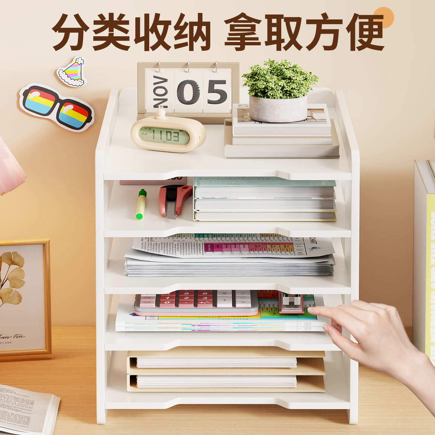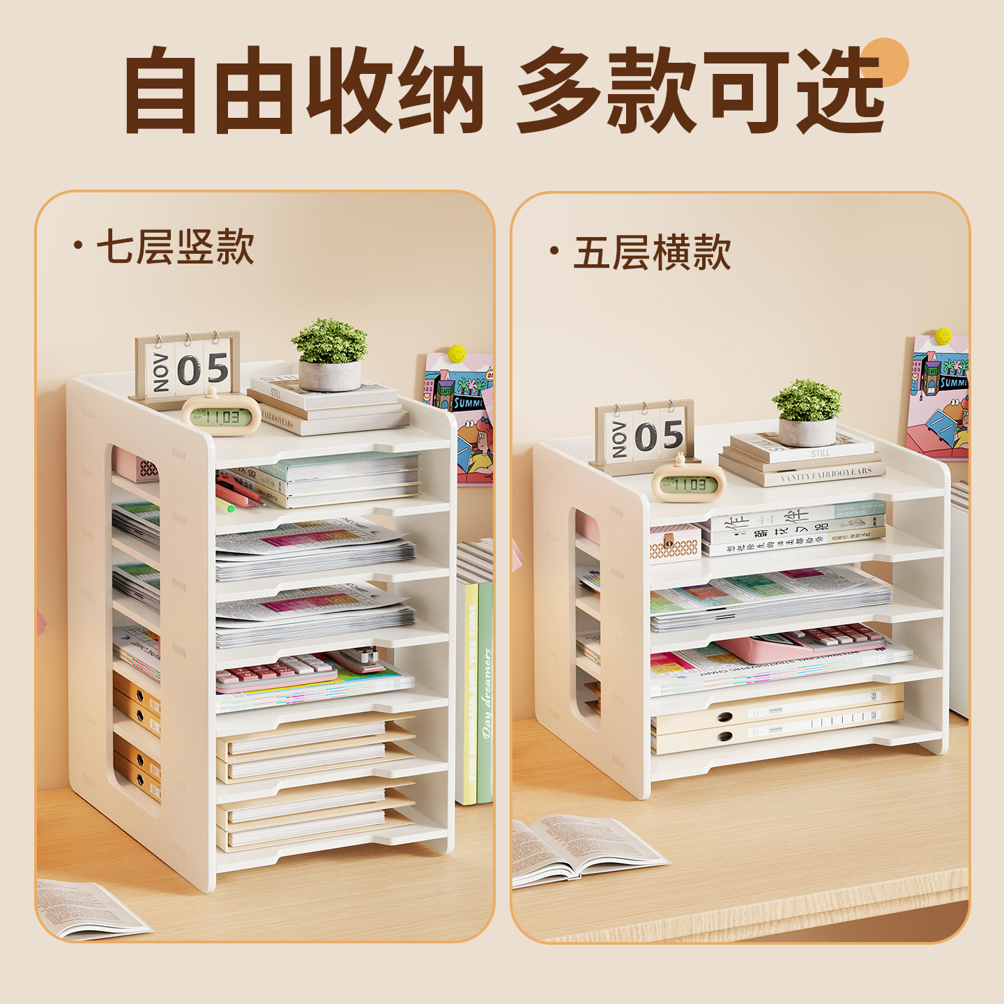 办公室文件架桌面分层整理架多层收纳盒工位高颜值改造神器文件框书立架办公用品A4纸杂物储物筐文件夹分类
