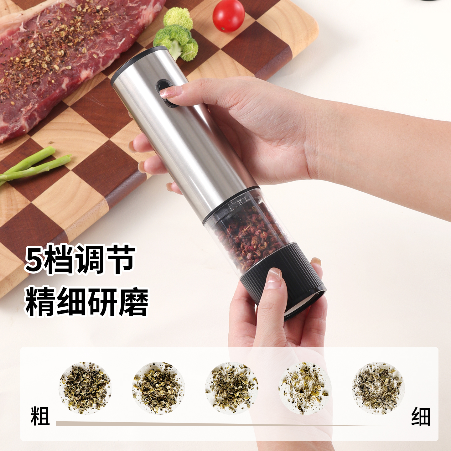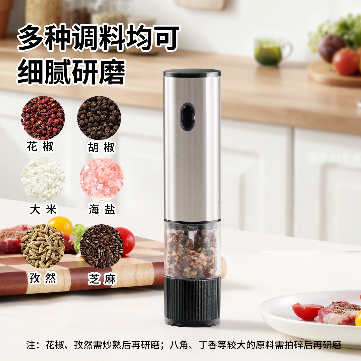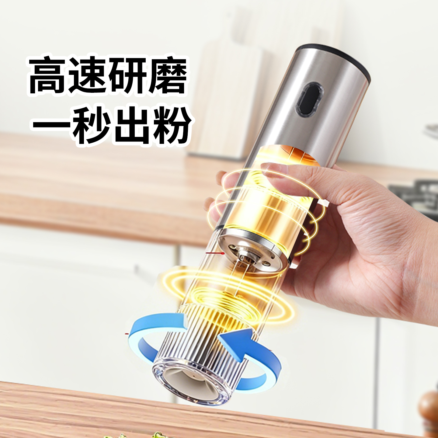 电动研磨器胡椒厨房家用黑胡椒粒海盐自动调味瓶不锈钢胡椒研磨瓶