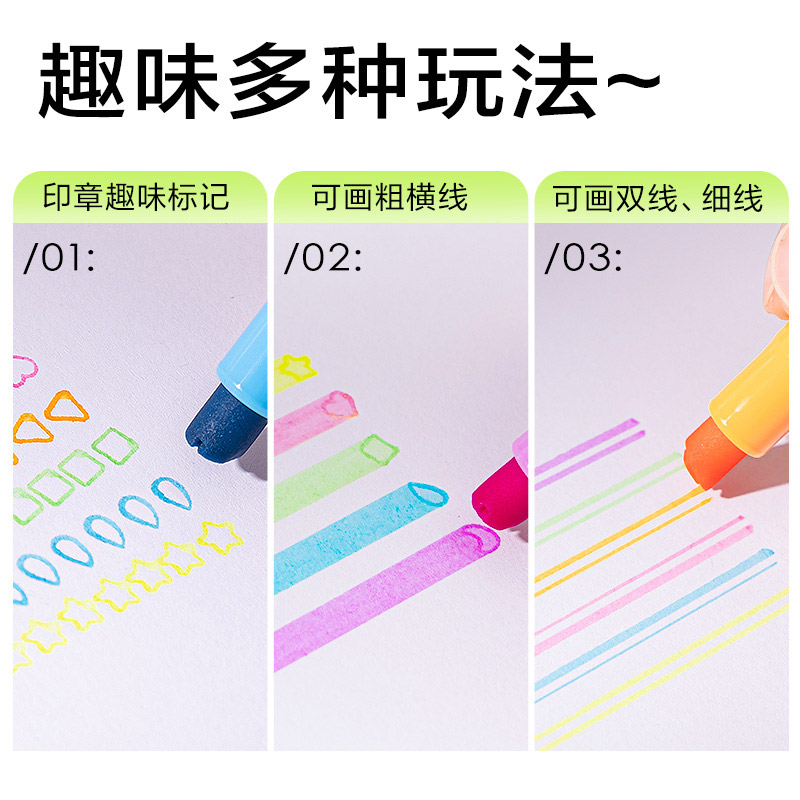 得力SK450荧光笔抗晕染可站立印章荧光标记笔学生荧光笔记重点笔