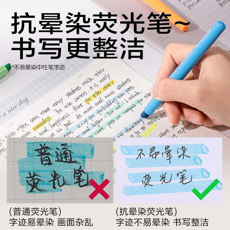 得力抗晕染荧光笔初中生专用划重点做笔记高颜值大容量荧光标记笔小学生专用彩色记号笔彩色荧光笔淡色系