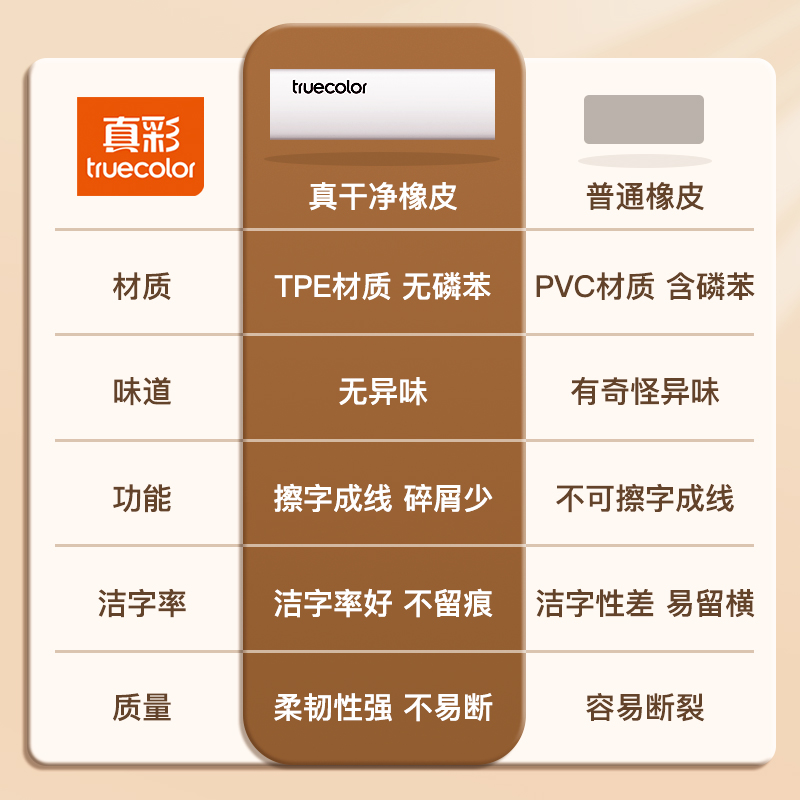 真彩三角橡皮超干净儿童写字素描美术橡皮擦小学生用擦字成线碎屑少橡皮考试用无痕集屑成线擦拭成条学习文具