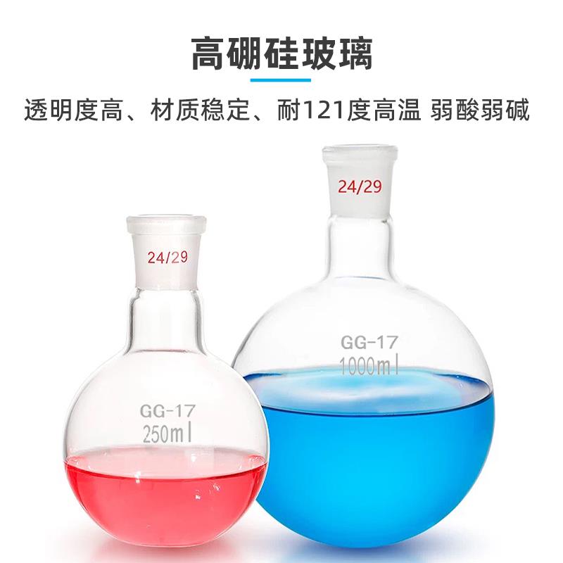 标口圆底烧瓶25/50/100/150/250/500/1000ml单口烧瓶平底玻璃烧瓶