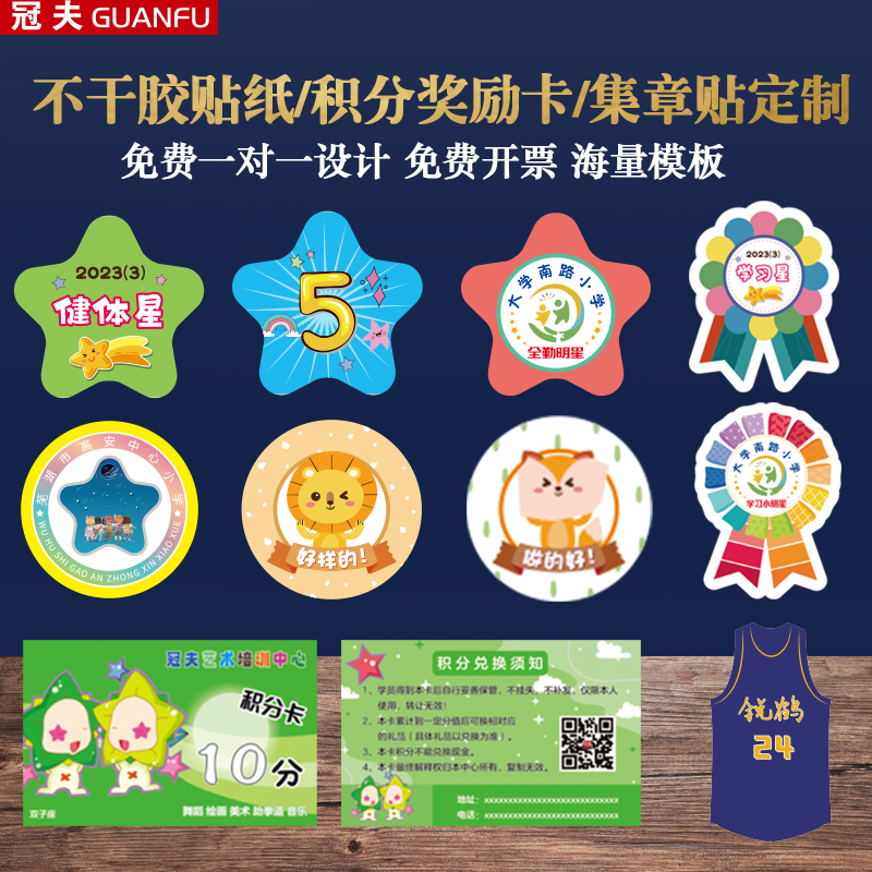 集章贴纸定制儿童奖励表扬贴设计打印幼儿园学生贴花纸不干胶标签异形卡通积分卡贴小红花激励争章手册粘贴纸