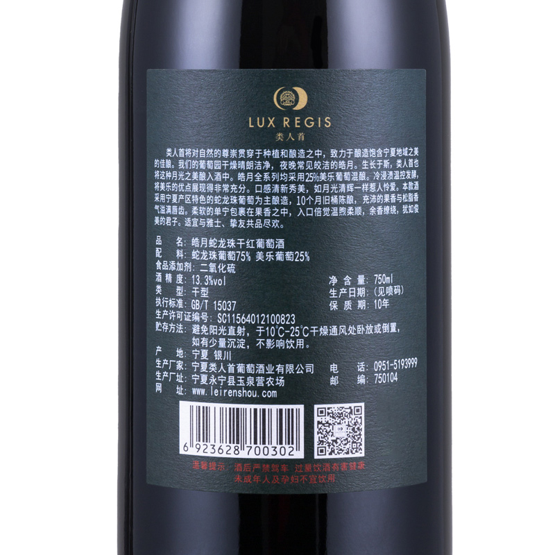 类人首 宁夏红酒 皓月蛇龙珠橡木桶干红葡萄酒750*6支装