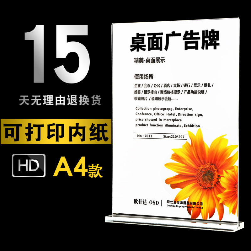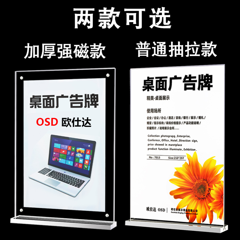 台卡A4抽拉台签 亚克力展示牌A5 立牌A6台牌桌牌T型广告价目表价格标价酒水菜单台签架立牌桌面餐牌双面透明