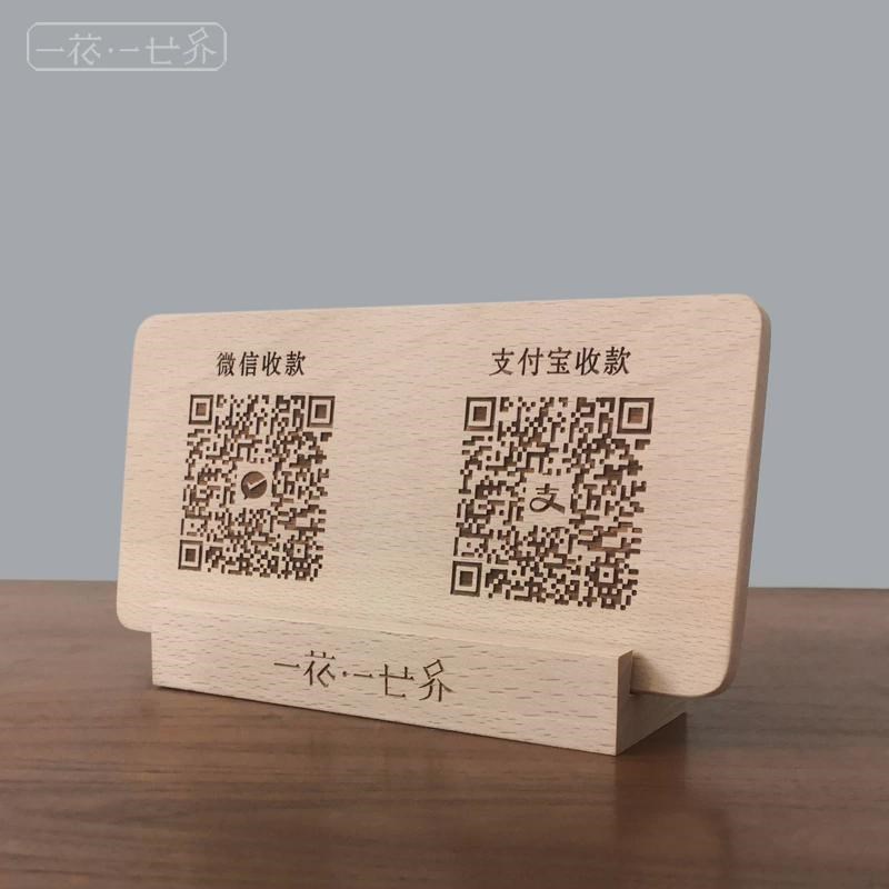 木质二维码展示牌定制收款支付宝摆件O收款支付码实木定制