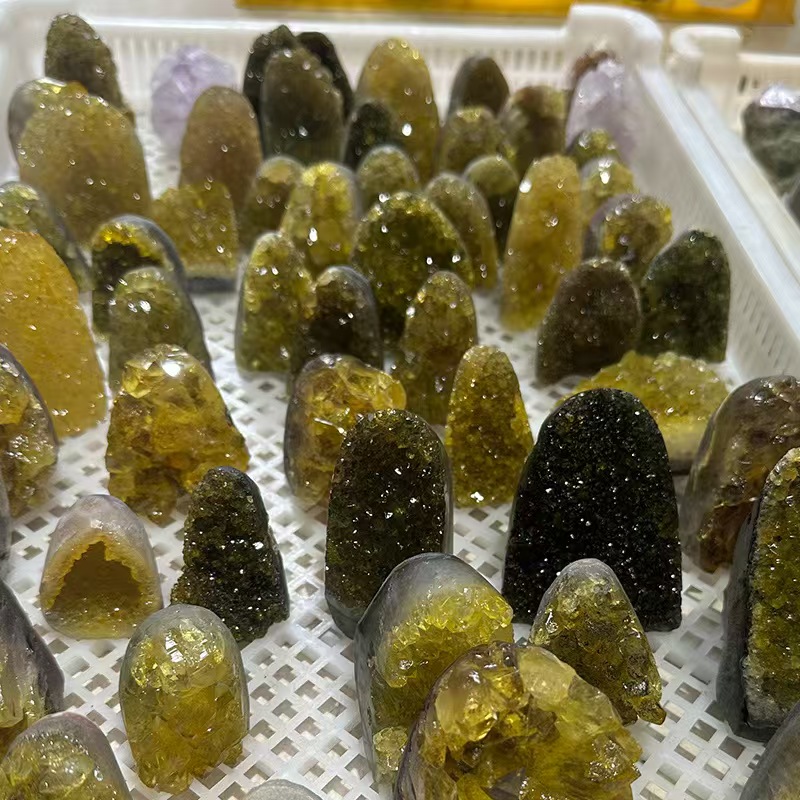 句可天然黄水晶簇黄金洞摆件家居办公室招财转运晶洞