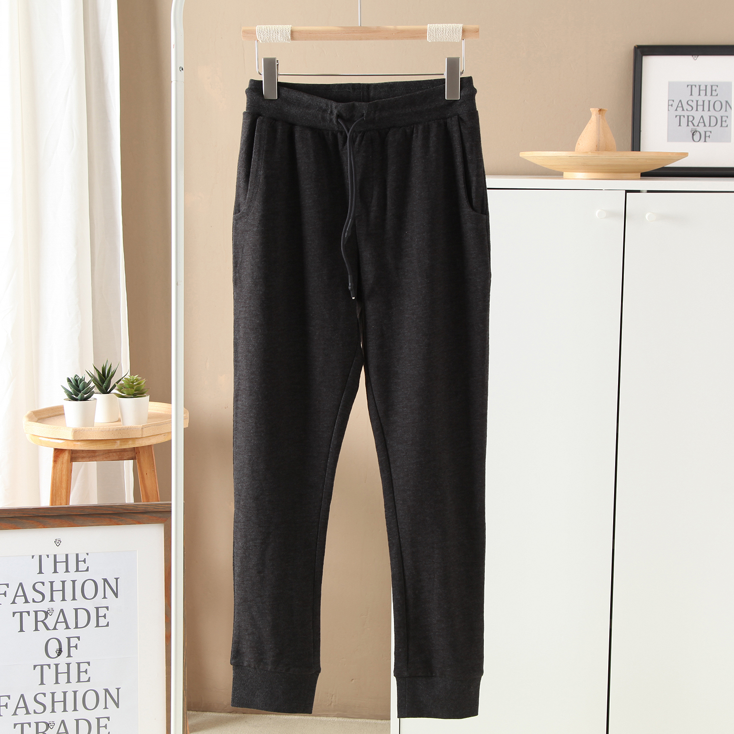 MosesQueen魔西女王慵懒风灰色时髦凉感卫裤抽绳阔腿休闲裤长裤