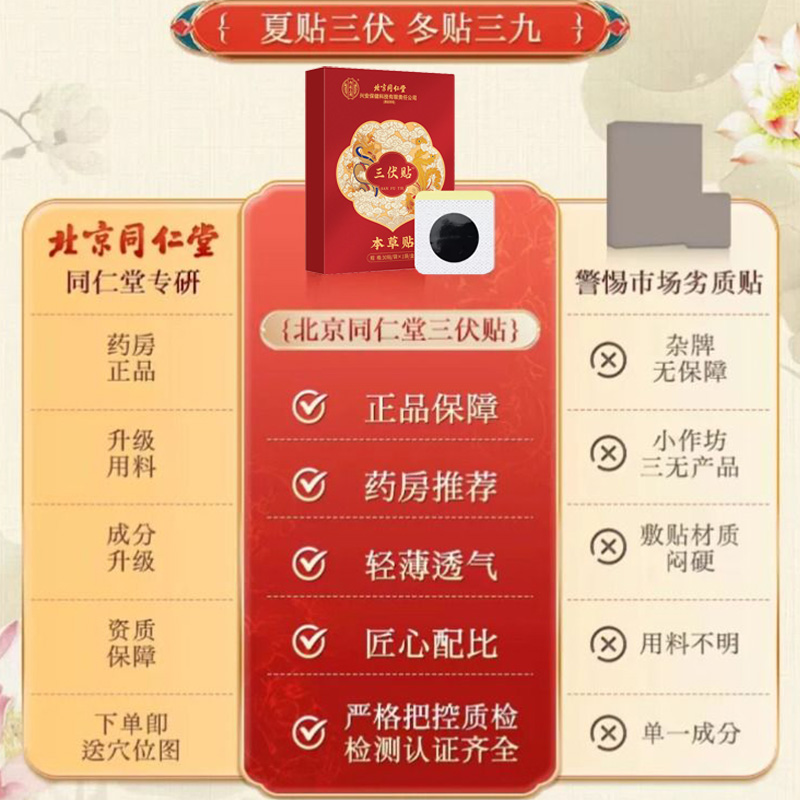 北京同仁堂三伏贴成人儿童搭空白贴祛艾湿排草毒冬病夏治官方正品