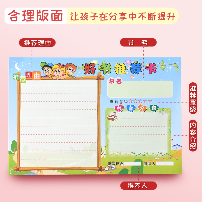 a5好书推荐卡读书记录卡课外书阅读积累登记卡片小学生分享读后感打卡表阅读登记卡幼儿园心愿存折积分收集本