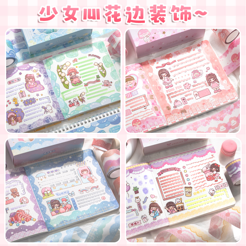 现货速发花边胶带手帐贴纸和胶带胶卷边框烫金彩虹云朵套装手账造