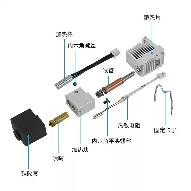 Anycubic Kobra3 V2挤出头喷头热端套件黄铜硬化钢喷嘴3D打印配件