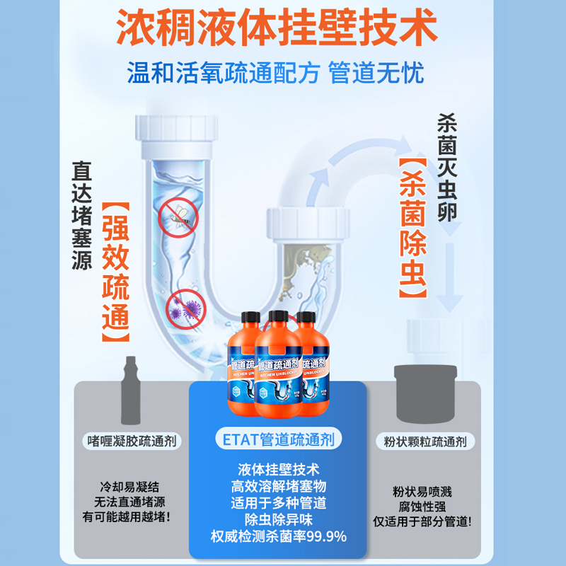 管道疏通剂强力溶解小飞虫厨房浴室马桶除臭除菌油污通下水道神器