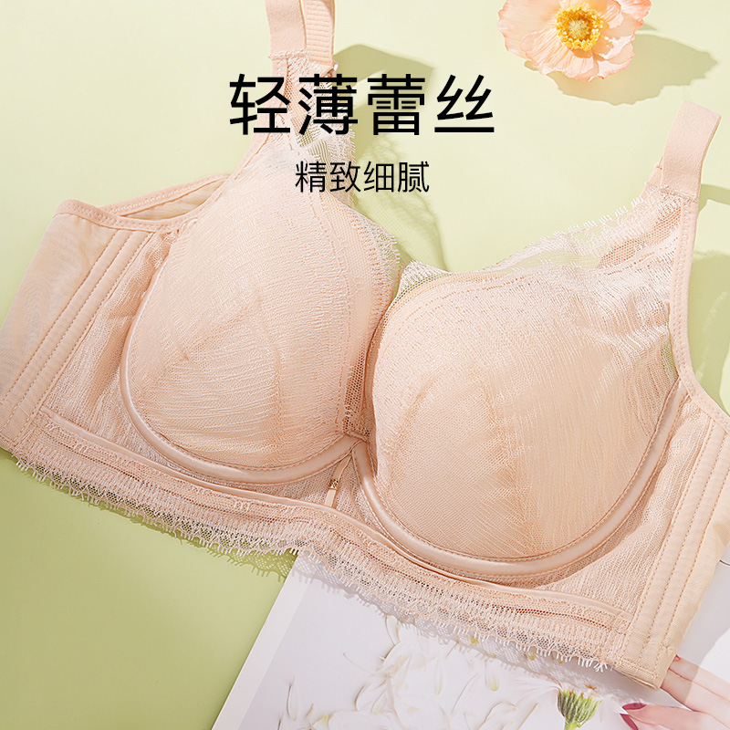 润微提拉女王内衣女夏薄款大胸显小无痕大码调整防下垂粉底液文胸