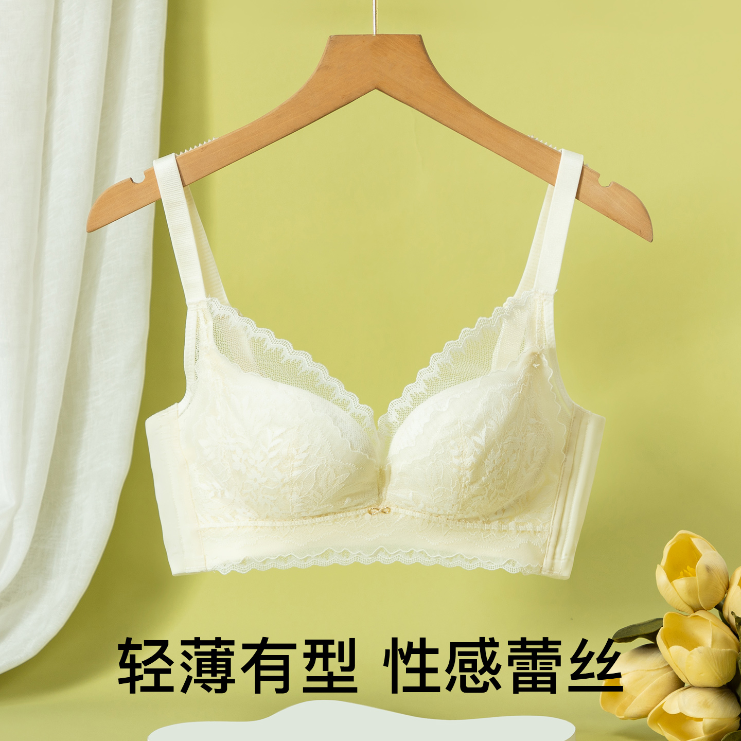 洋奢无钢圈薄款内衣大小胸聚拢收副乳防下垂无痕运动美背防震文胸