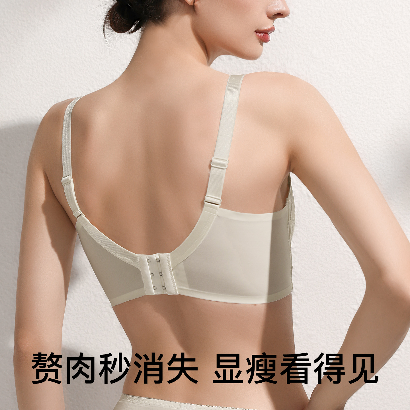 润微提拉女王内衣女夏薄款大胸显小无痕大码调整防下垂粉底液文胸