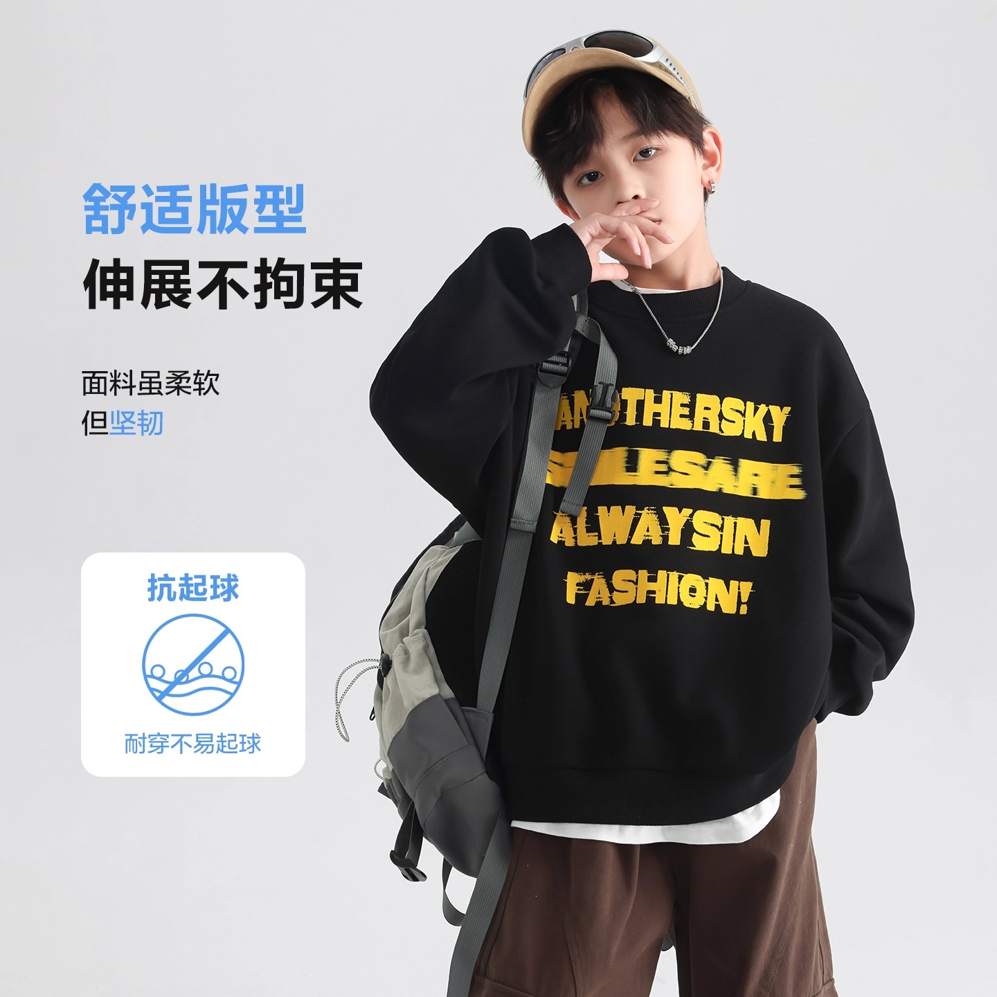 男童秋季潮牌红色运动卫衣2025新款儿童男孩春秋街舞上衣黑色加绒
