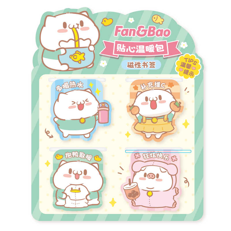 饭粒猫与包子鸭磁性书签可爱卡通学生创意文具精致书夹生日礼物