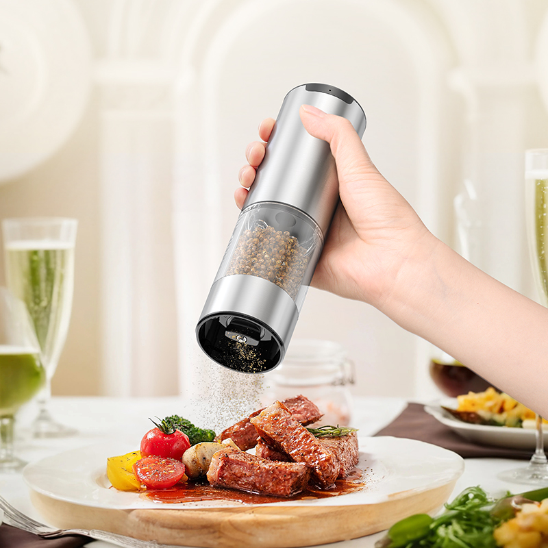 电动黑胡椒海盐研磨器厨房亚麻家用自动罐不锈钢研磨调料超细充电