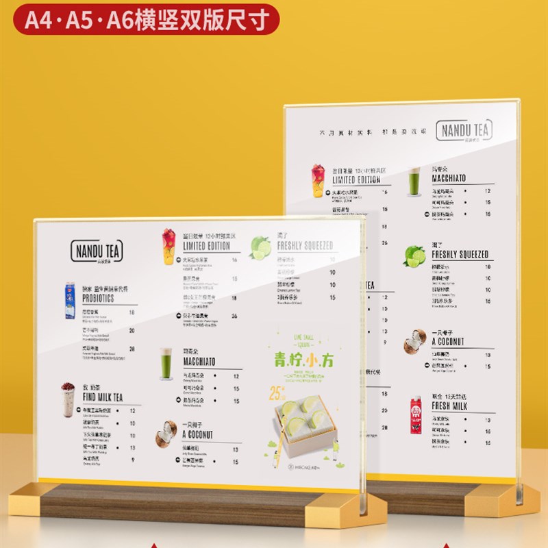 现货速发亚克力双面桌牌台卡价目表A4透明餐厅餐桌广告展示牌子木