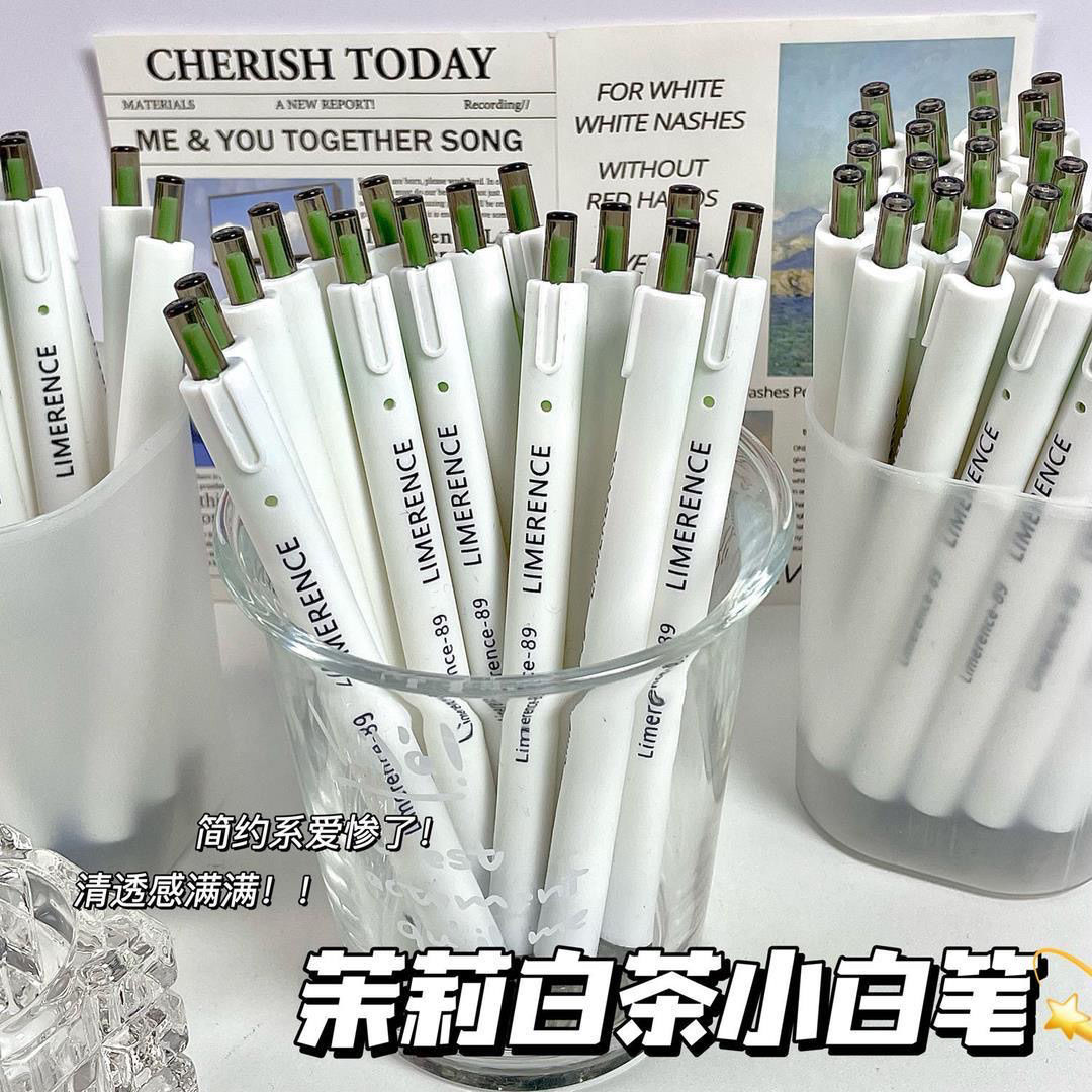 茉莉新款白茶高颜值ins中学生动笔按动0.5刷题中性笔按动笔爆款