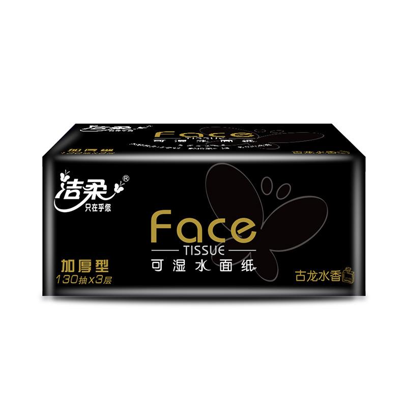 洁柔抽纸巾黑Face每提3包3层130抽L号古龙水香可湿水抽纸